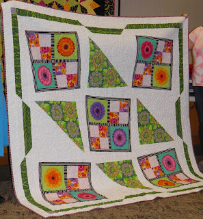 She came up with the neat inner border idea because she ran out of the green fabric, so made those stepping stones in the centers to compensate.